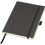 Flexible soft touch cover notebook (A5 size reference) with built-in elastic closure, ribbon page marker, pen loop, document pocket on interior back cover and 80 sheets (80gsm) of cream lined paper. Packed in a black sleeve.